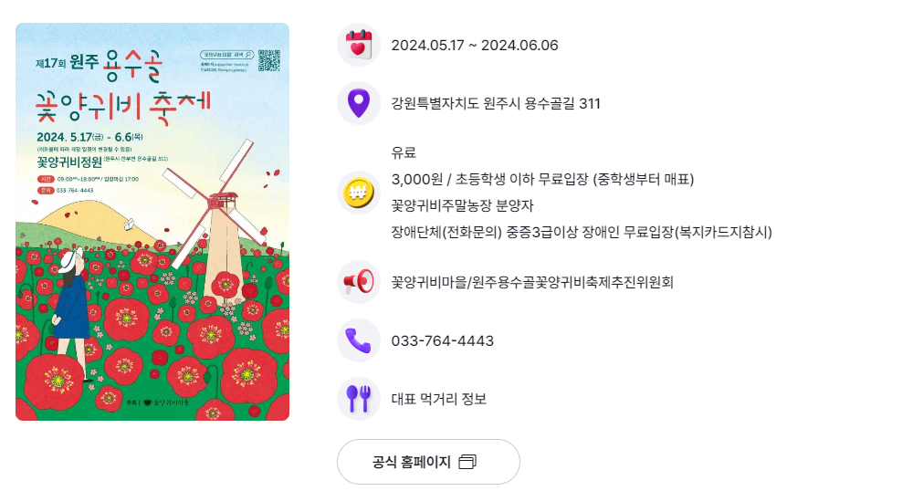 ✅ 축체 일정, 비용, 홈페이지 바로가기, 길 찾기, 근처 맛집, 근처 여행정보까지 확인 가능합니다.