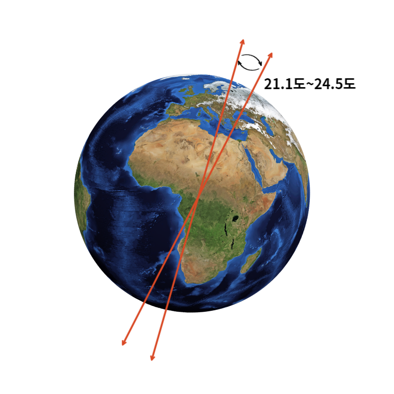 - 축 기울기의 변화 (Axial Tilt): 지구의 축 기울기는 약 22.1도에서 24.5도 사이에서 변화합니다. 이러한 변화는 약 41,000년의 주기로 발생하며, 이는 계절의 강도와 지속 기간에 영향을 미칩니다.