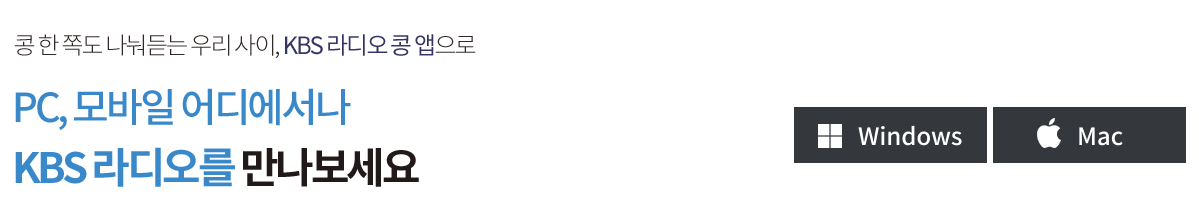 - 상단 검색창에 'KBS 콩' 또는 'KBS 라디오 콩'을 입력하고 검색합니다.